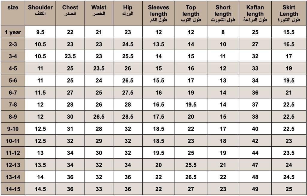 | Size | 1yr, 2-3yr, 3-4yr, 4-5yr, 5-6yr, 6-7yr, 7-8 Yr, 8-9yr, 9-10yr, 10-11yr, 11-12yr, 12-13yr, 13-14yr, 14-15yr |
